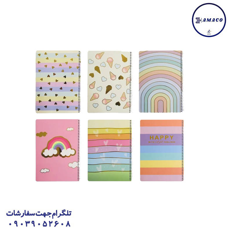 دفتر 100 برگ خطی پاستلی B6 کد 21018 پاپکو