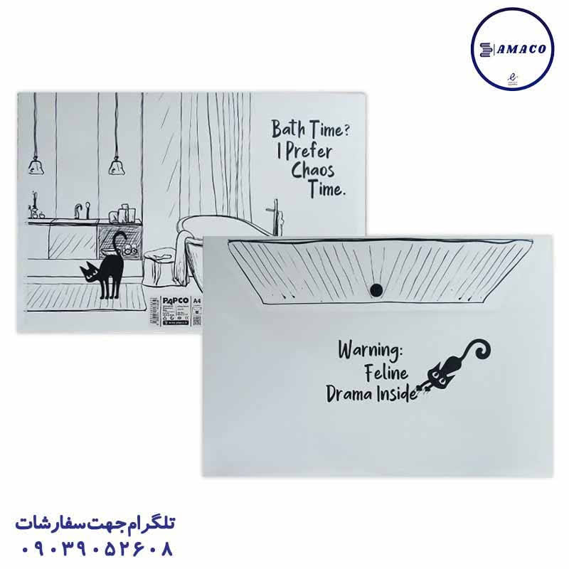 پوشه دکمه دار سفید مشکی طرحدار کد 4215 پاپکو