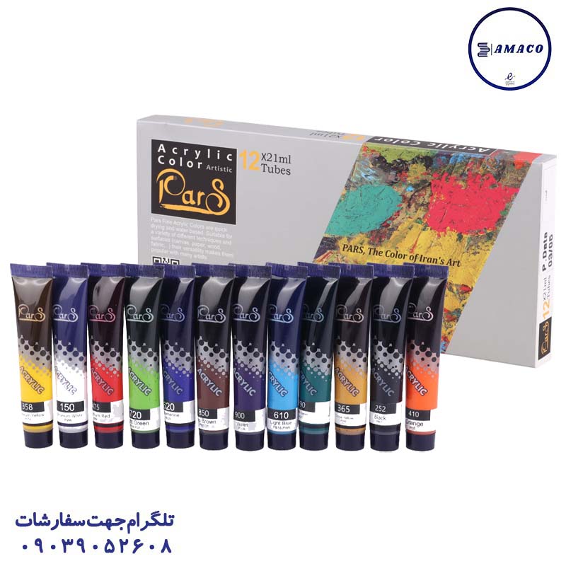 رنگ اکرولیک 12 رنگ 21 میل پارس