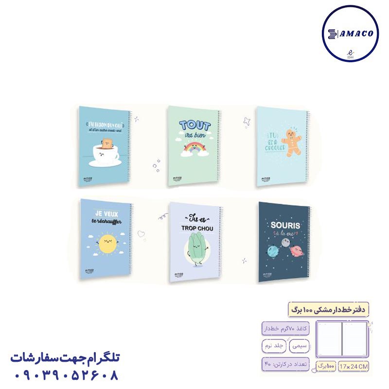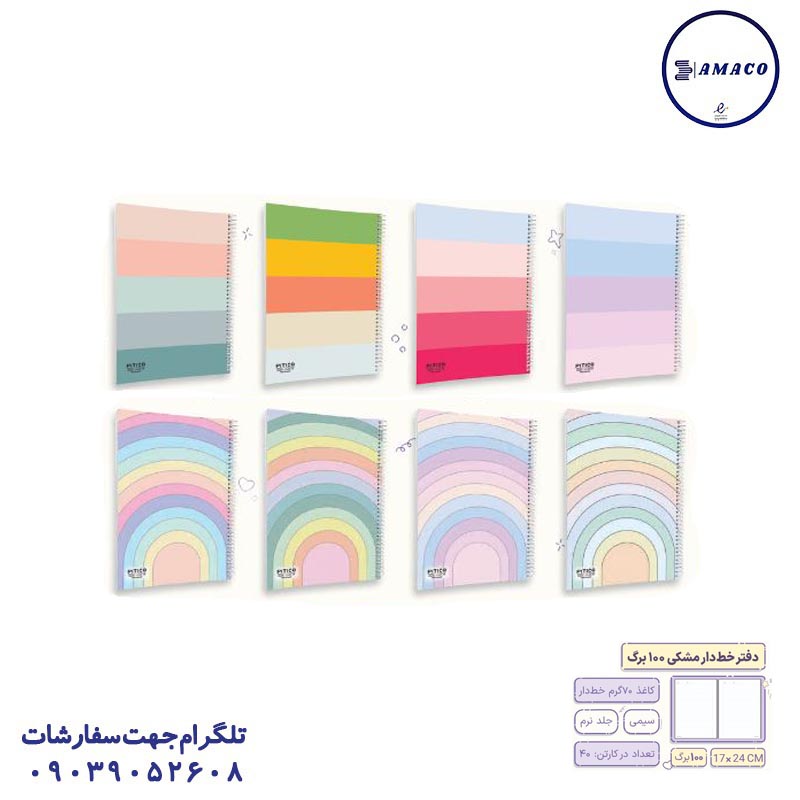 دفتر 100 برگ خطی پاستلی B6 کد 21018 پاپکو