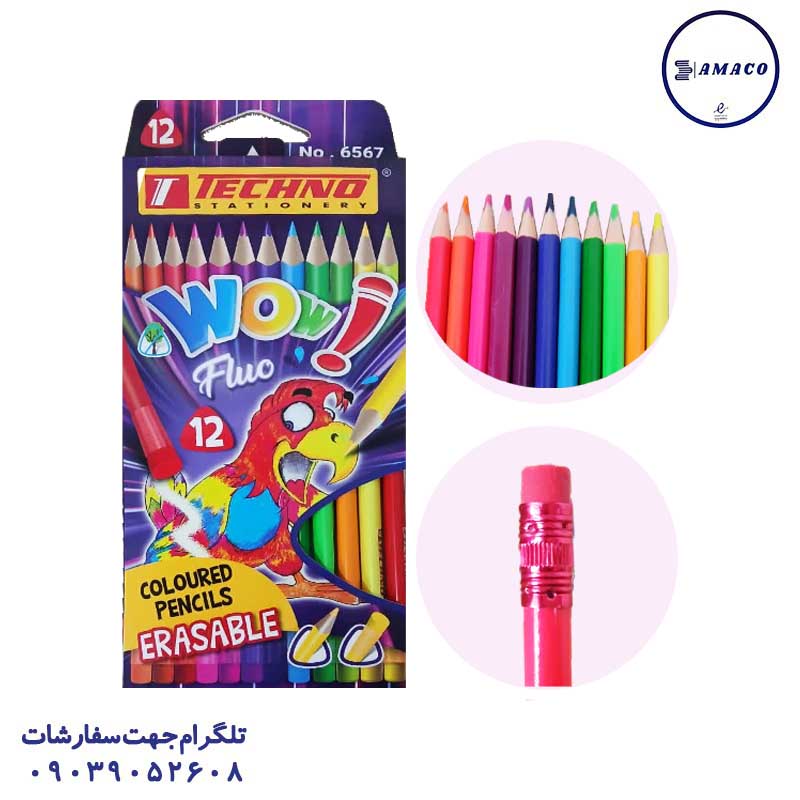 مداد رنگی 12 مقوا فلورسنت پاکن دار 6567 تکنو